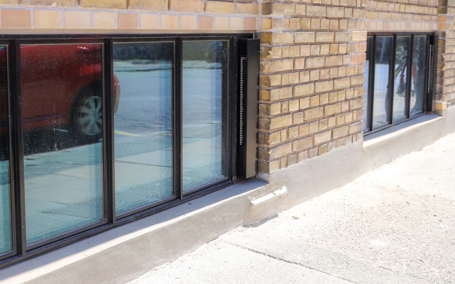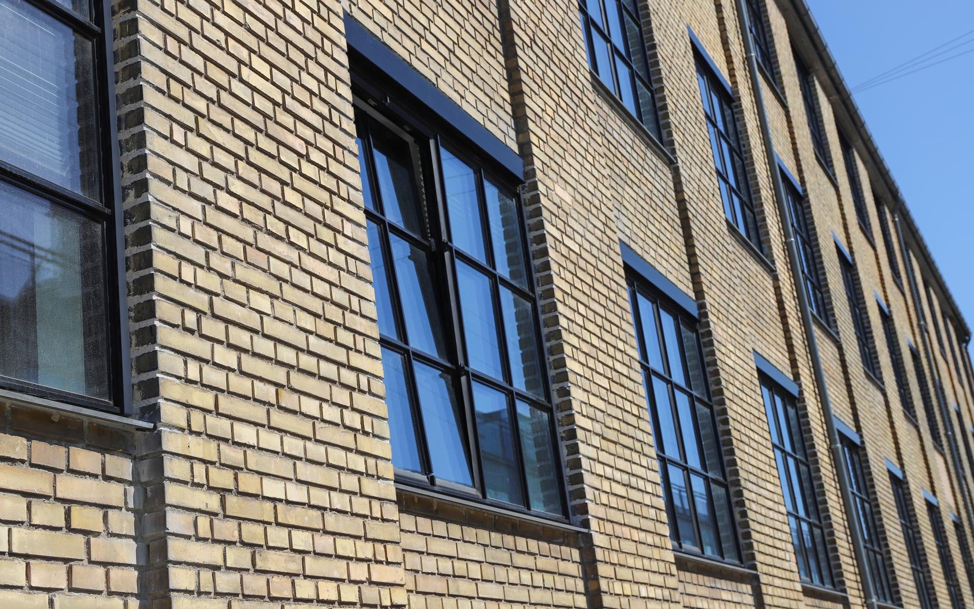 Sålbænkene under vinduespartierne er udført i sort skifer, som er et naturligt og langtidsholdbart materiale, som fuldender det æstetiske og industrielle udtryk i kombination med smalle sprosser og rammer.